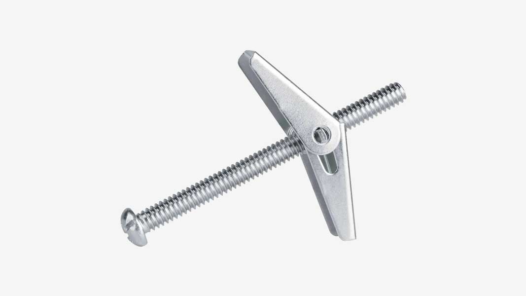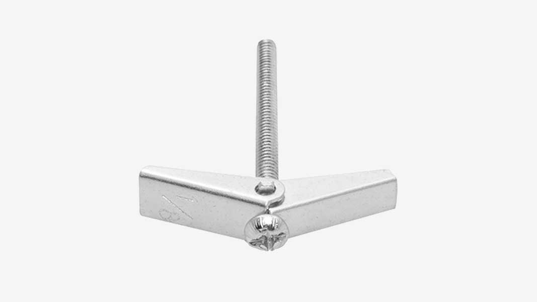 Está elaborado de metal resistente a la corrosión. Está compuesto por un tornillo de cabeza redonda de cruz y una mariposa flexible que sirve como ancla. Puede emplearse en instalaciones horizontales o verticales, su diseño lo vuelve seguro.